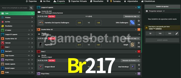A aposta Br217 oferece aos jogadores a experiência mais conveniente de apostas em eSports!
